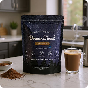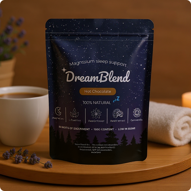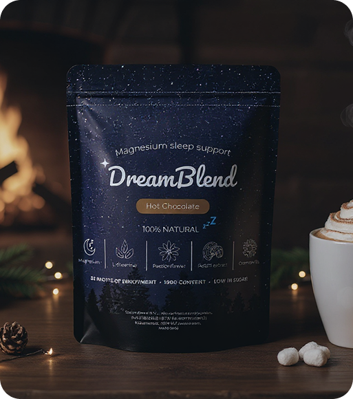 DreamBlend combines natural plant extracts and magnesium in a delicious chocolate drink — your new nightly ritual for deeper, restorative sleep.